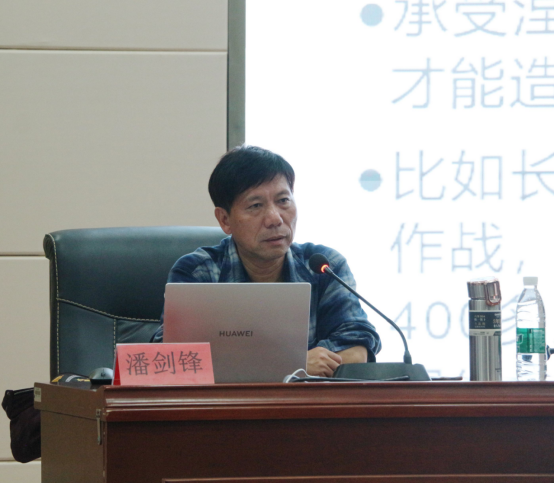 潘剑锋教授围绕青年学子与时代的关系,通过古今典故以及自己丰富的人生阅历,告诉同学们要在大学期间养成良好的习惯,尤其是养成阅读的好习惯,希望同学们接下来的四年里积极参加社会实践活动,要有强健的体魄、健全的心理、宽大的胸怀和气度。