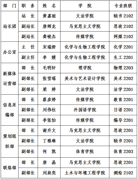 附件1:安博官网app易班学生工作站第六届学生干部成员聘任名单