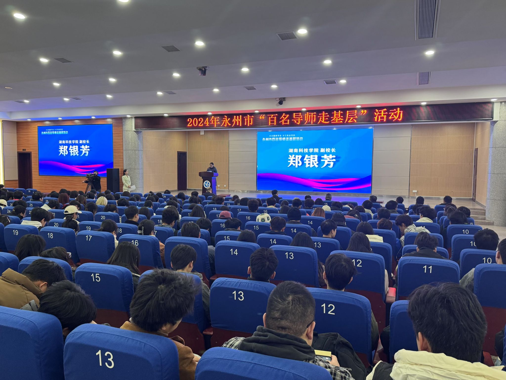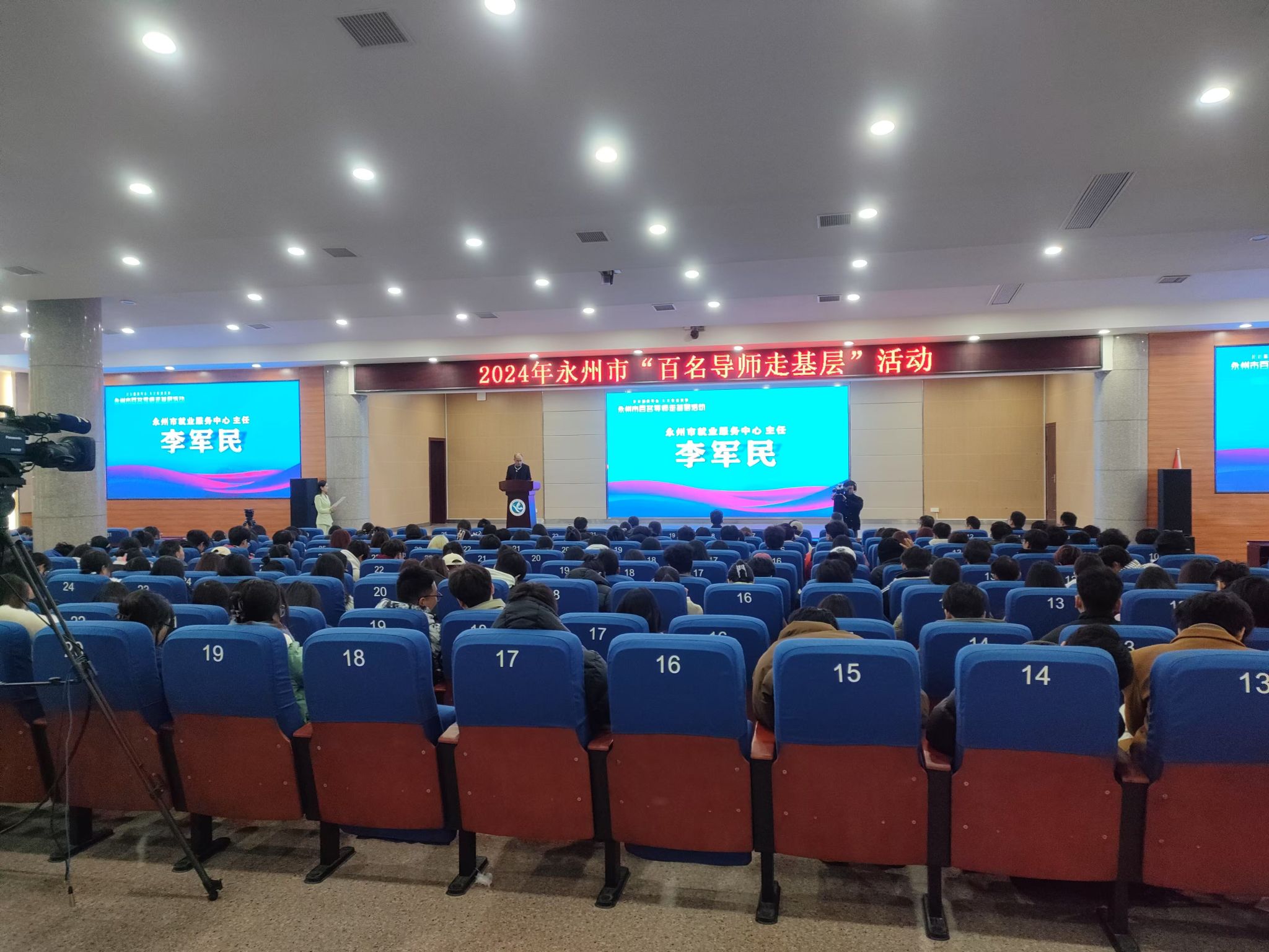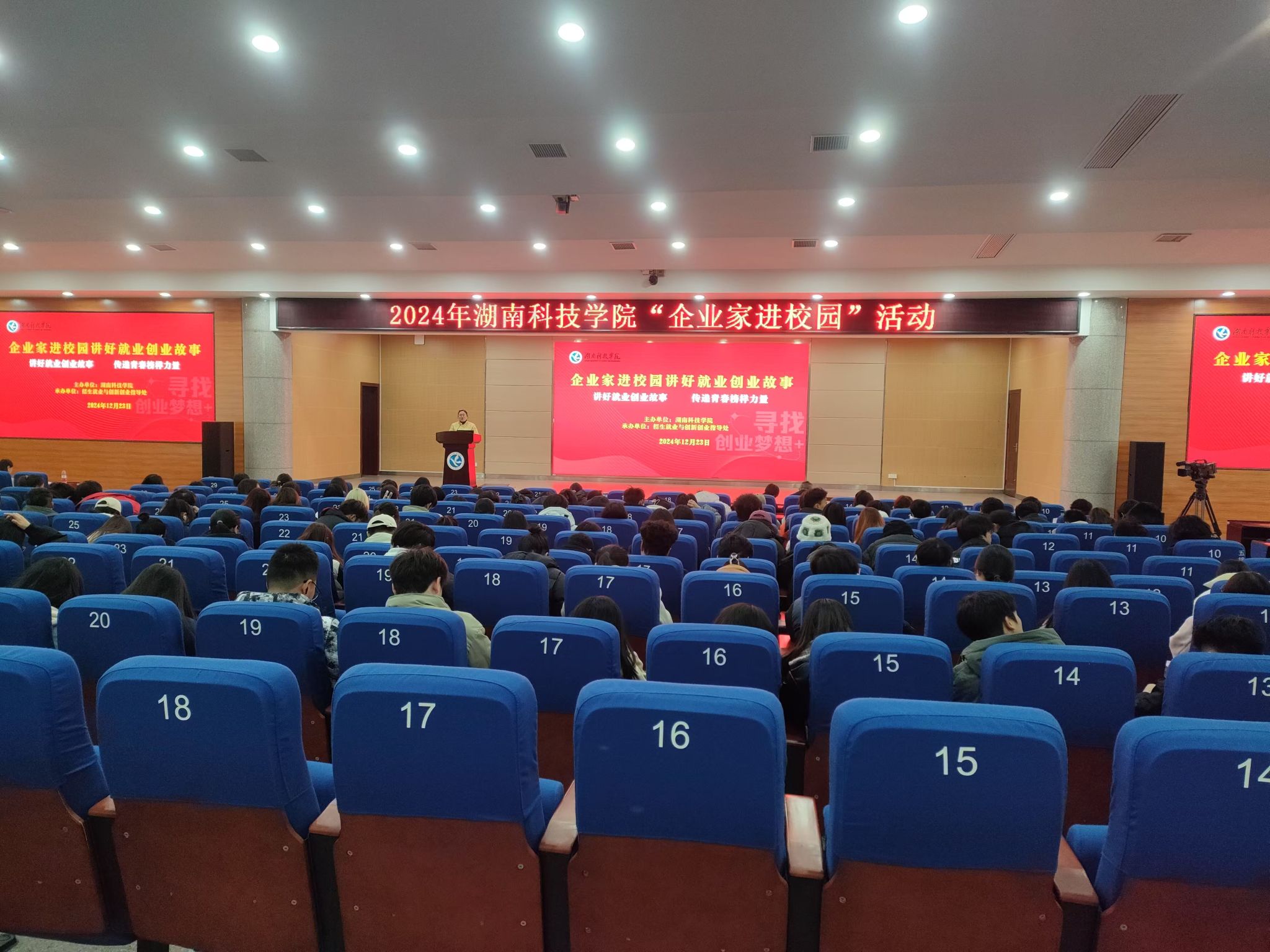 本网讯(通讯员 龙泉)12月23日下午,学校在潇湘大讲堂举办“企业家进校园讲好就业创业故事”暨永州市“百名导师走基层”活动。副校长郑银芳、永州市就业服务中心主任李军民、安博中国与创新创业指导处处长胡清华出席活动,企业家导师团队及300余名学生代表参加活动。